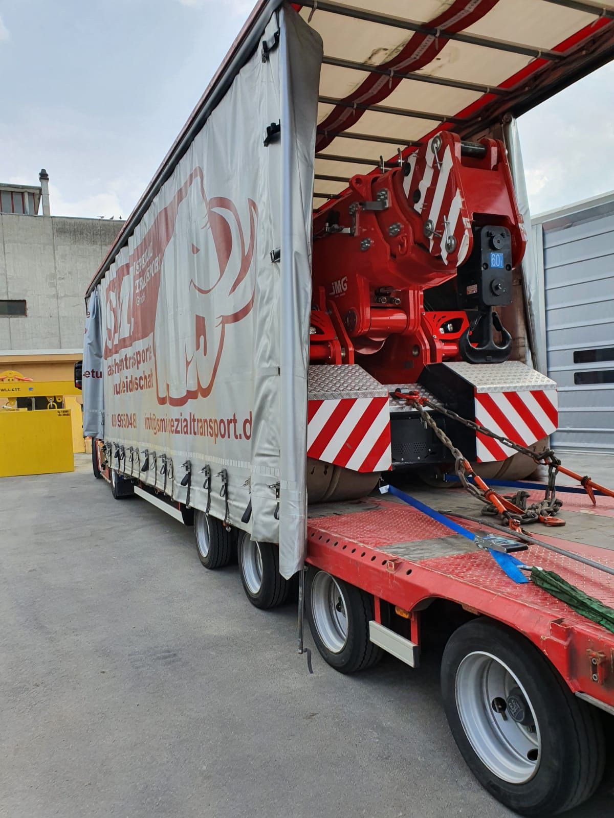 In diesem Fall haben wir eine Werkzeugmaschine abgebaut, ausgebracht, verladen mittels eines Autokran, Ladung vorschiftsgemäß gesichert von Deutschland nach Niederlande transportiert mittels Sondergenehmigungen, da die Maschine 3,80 m breit war und in den Niederlanden haben wir die Maschine abgeladen, eingebracht, aufgestellt und grob ausgerichtet.