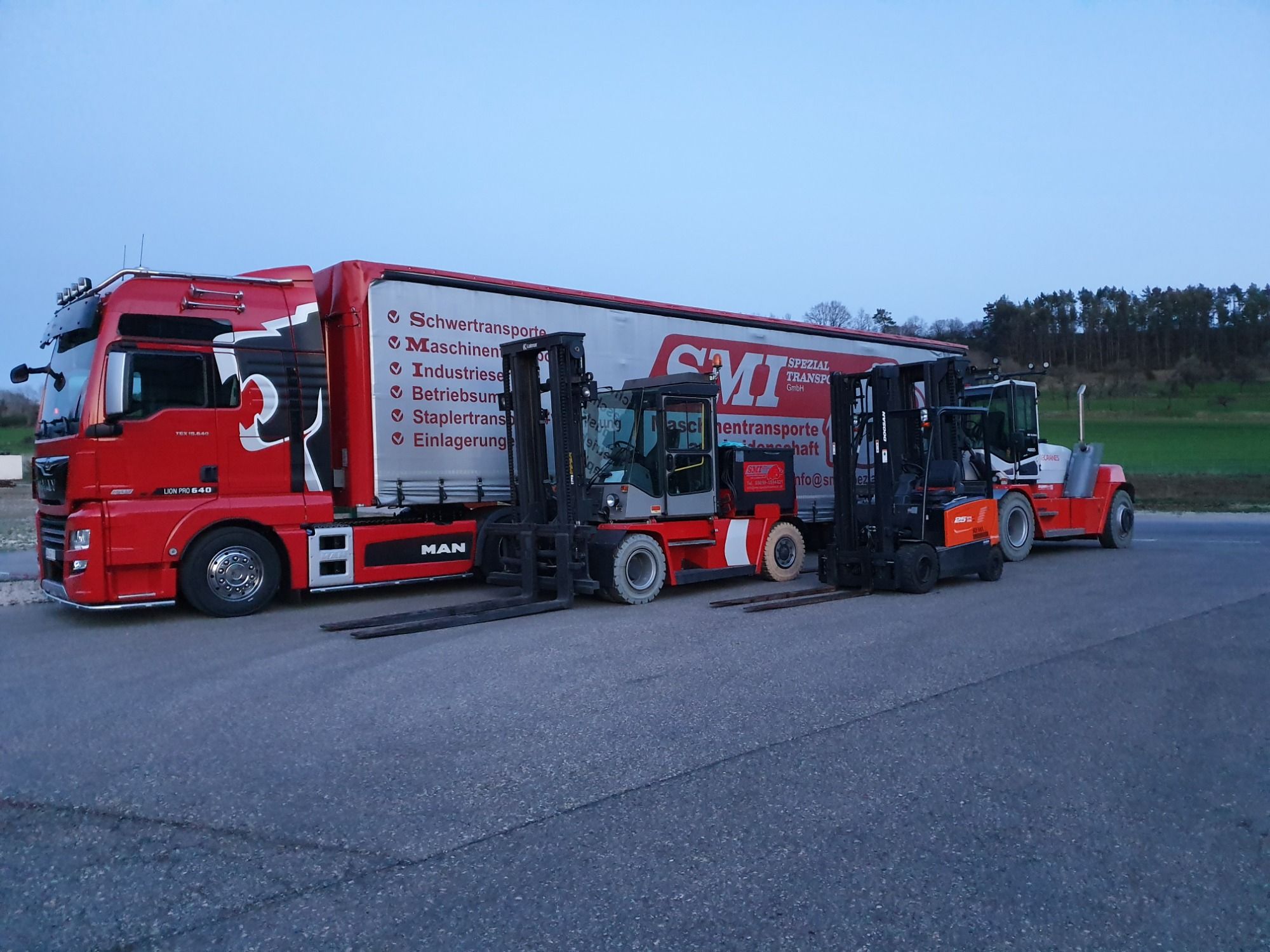 In diesem Fall war es so, dass der Schotterboden nachgegeben hat und wir mit unserem Gabelstapler eingesunken sind und dann haben wir kurzerhand eine "Straße" aus Holz gebaut, um den Betriebsumzug von 12 Werkzeugmaschinen durchführen.